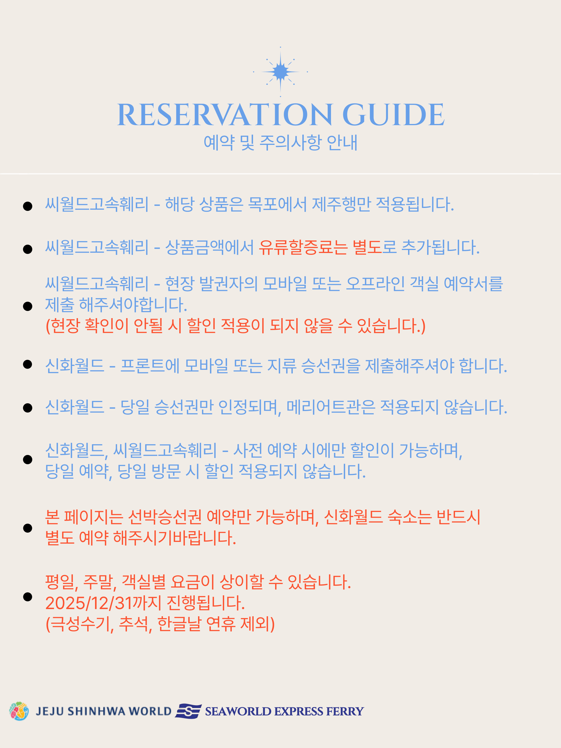 1. 예약 후 입금이 완료된 예약 건은 확약으로 보고, 이후 여객 사정으로 인해 확약된 선박편의 승선을 취소하려는 여객은 당해 선박편 출발 예정 시각 이전에 선사의 전화 및 인터넷으로 확약 취소 통고하여야 한다.